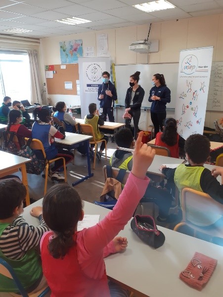 Ce fut une semaine spécifique autour des valeurs citoyennes que l’on retrouve dans l’esprit du sport olympique et paralympique, grâce à l’intervention du service des sports de la ville, le lundi et jeudi matin, qui a proposé 3 ateliers, du floorball (hockey) dans le city stade, de l’athlétisme (saut, lancer, course) et du biathlon (trottinette, tir de précision). En parallèle, les enseignants ont mis en place divers ateliers, fabrication d’une réglette de l’effort pour évaluer l’effort lors des ateliers sportifs, écriture d’une rédaction sur le thème des jeux olympiques, visionner des vidéos autour du sport et de l’attitude fairplay qu’on y favorise. Il fut également abordé le changement de regard sur le handicap dans le sport, le tout à travers un quizz ritualisé tous les matins à 8h30 dans toutes les classes, pour sensibiliser nos écoliers et mettre en valeur le handisport.